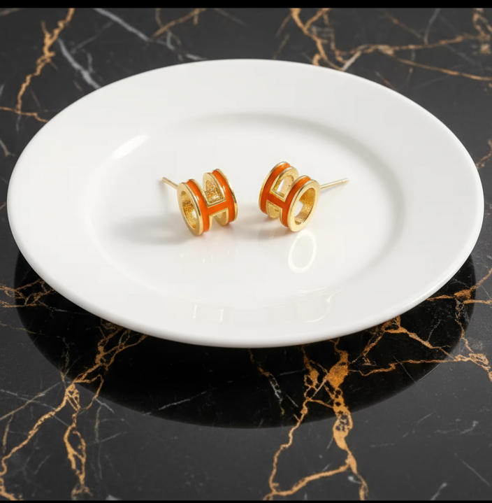 Bubble Letter H stud earrings in multiple colors. These earrings match the other pieces in this style such as the H bangle bracelets & charm necklaces.